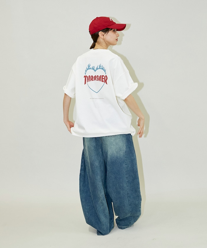 뒷면에는 불꽃 모티브 하트 그래픽 프린트