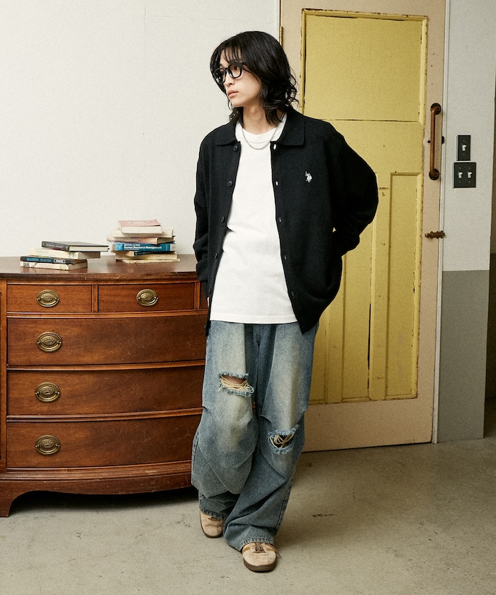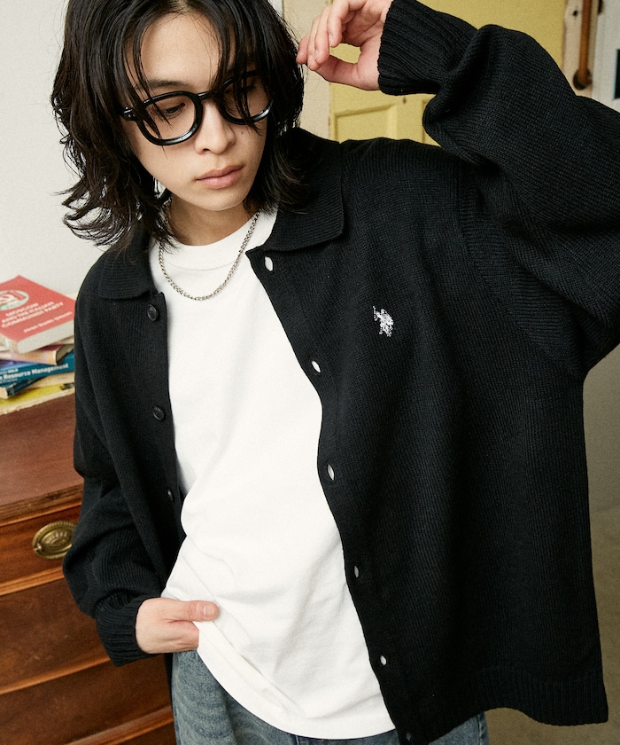 U.S. POLO ASSN. 브랜드 로고 자수 가 돋보이는 심플한 니트 카디건