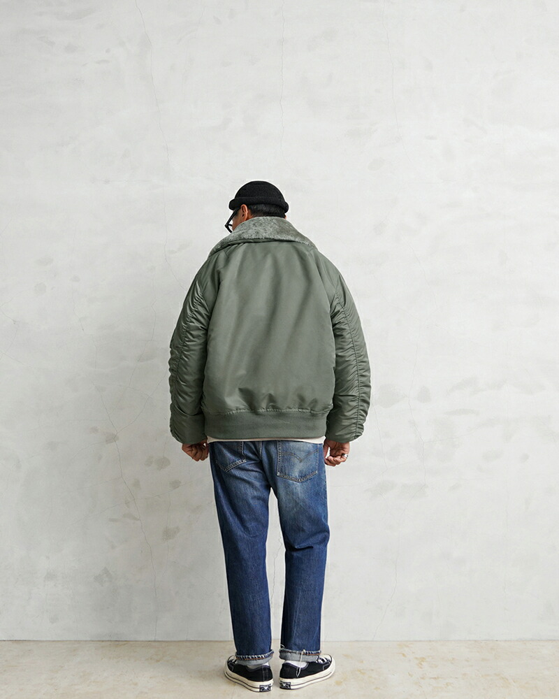1945년에 첫 등장한 B-15 시리즈는, 당대 혁신적이었던 나일론 소재를 최초로 채용한 플라이트 재킷 으로 이후 MA-1 계보의 시작점이 되는 모델입니다.