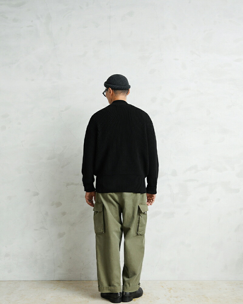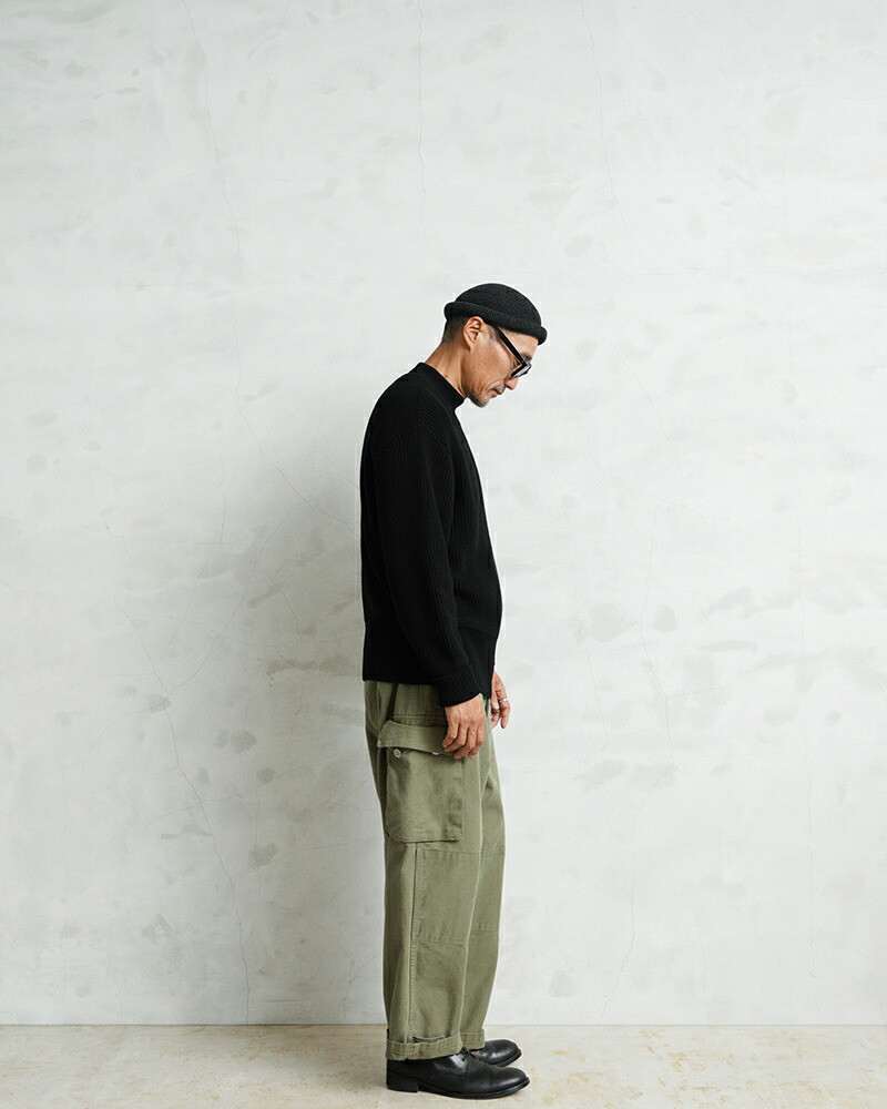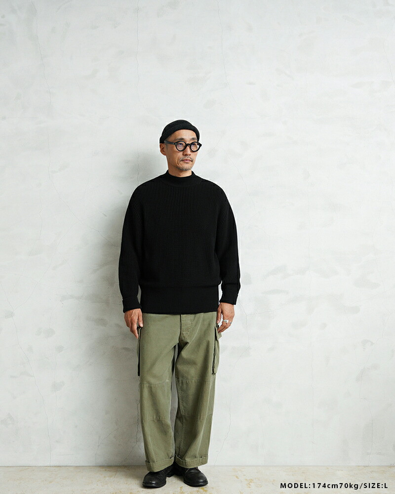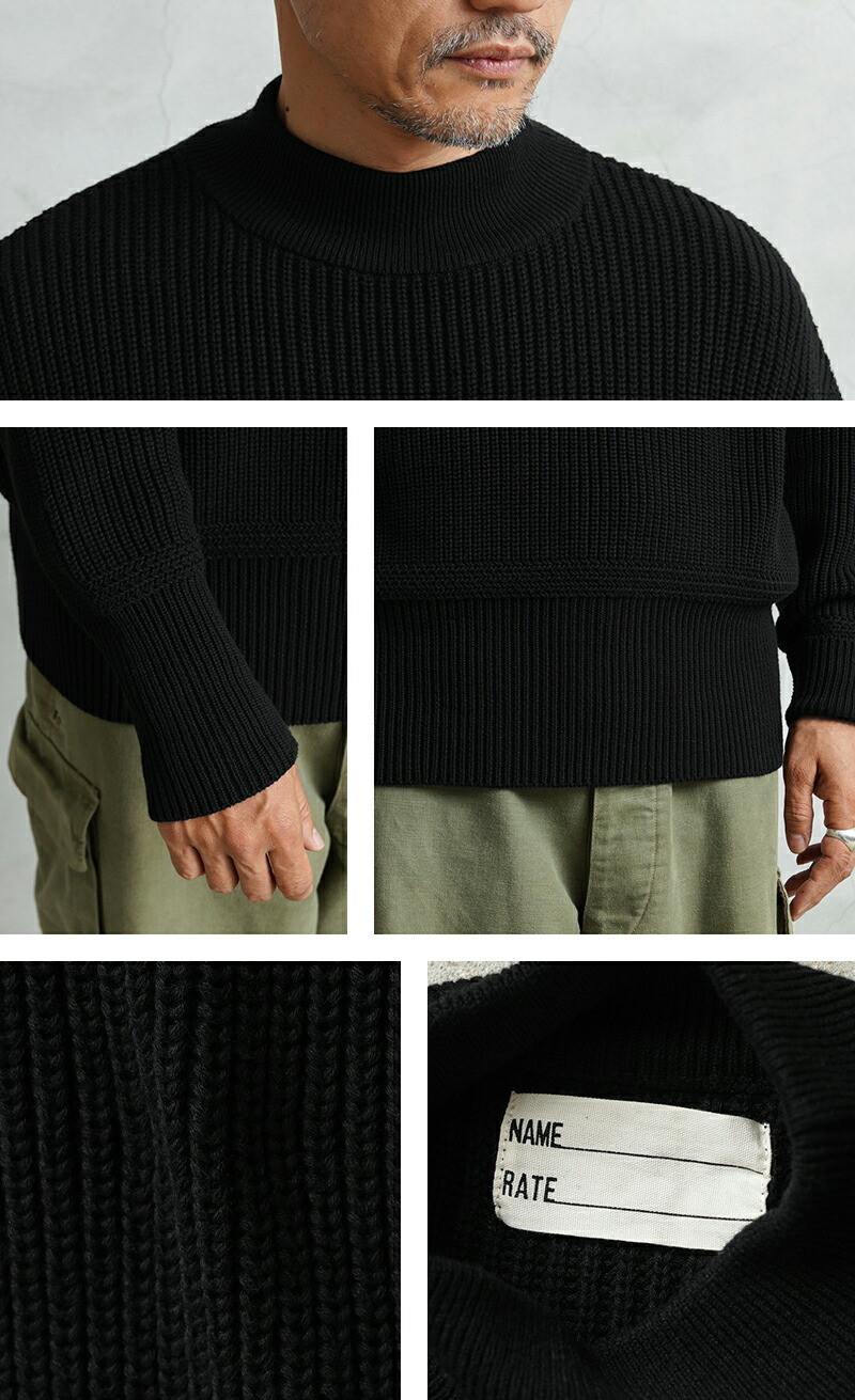 미 해군(U.S.NAVY)에서 채용된 방한용 모크넥 세터를 복각한 모델로, 혹독한 선상 환경에서도 견딜 수 있도록 제작된 워크 밀리터리웨어입니다. 원본은 울 소재로 제작되었으나, 웨이퍼에서는 코튼 폴리 혼방사로 제작되었습니다.