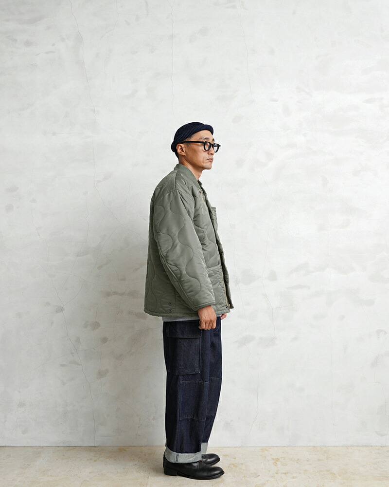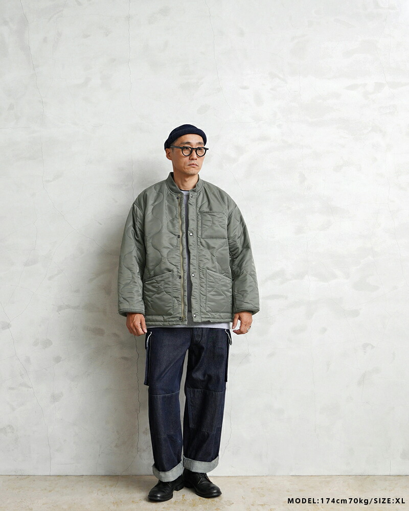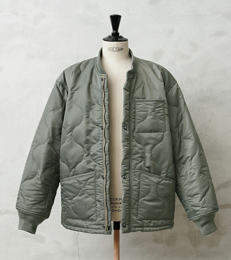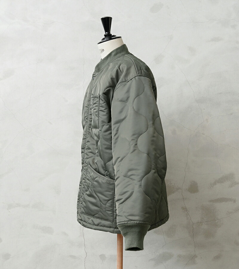 본래는 CWU-7/P 자켓의 라이너(내피) 로 설계된 아이템이지만, 리브 처리된 넥·소매, 지퍼와 스냅 버튼이 달린 전면 여밈 등 아우터로도 손색없는 독특한 디자인이 매력적인 모델입니다. 표주박 모양의 퀼팅 패턴을 사용하며 양쪽 패치 포켓으로 실용성이 높습니다. 충전재는 3M 씬술래이터를 사용하여 보온성이 우수합니다.