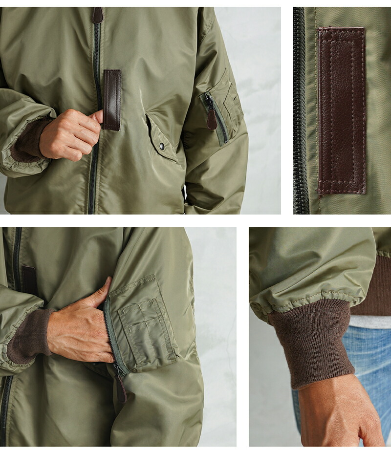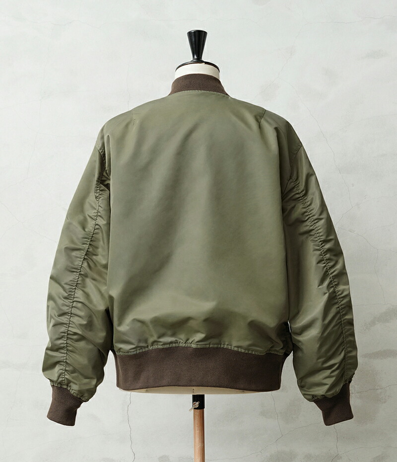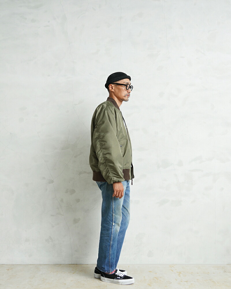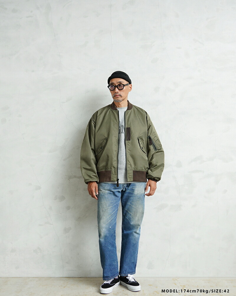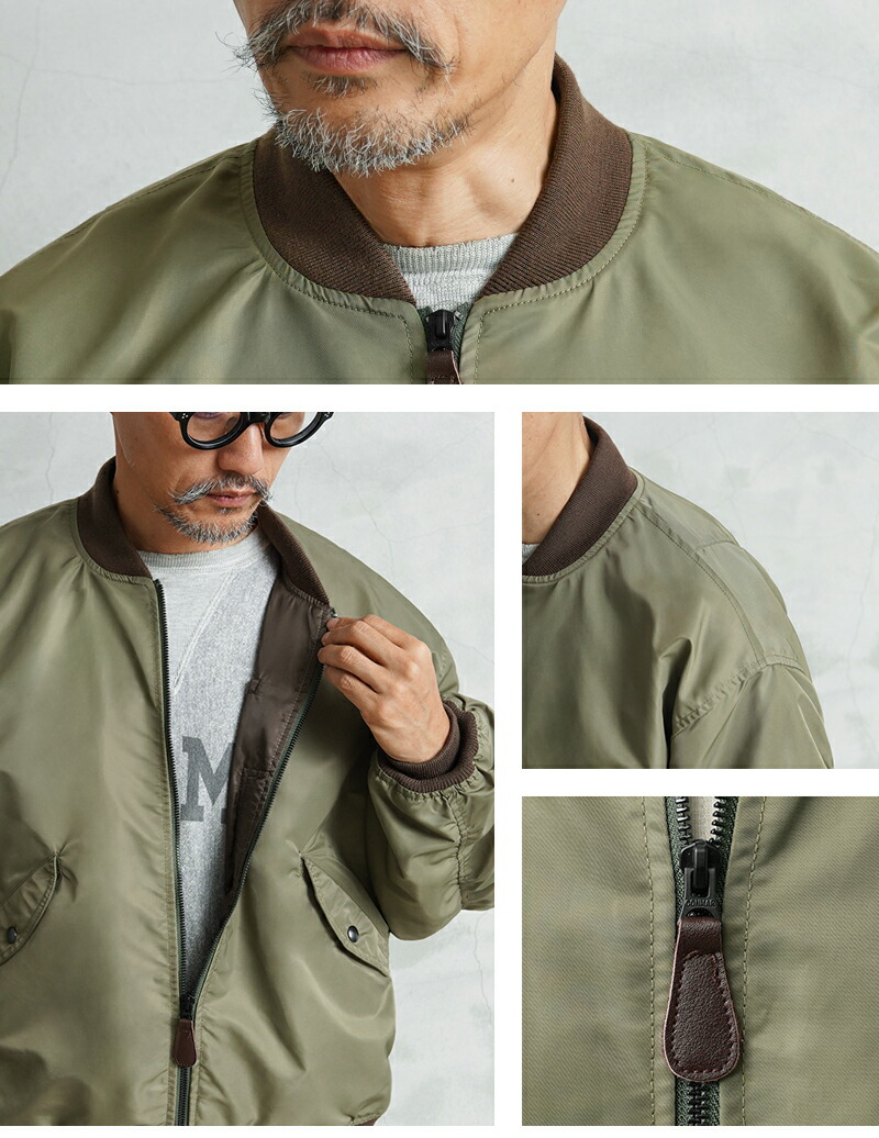 1945년 A-2 재킷의 후속으로 등장한 L-2는 섭씨 10℃~30℃의 ‘라이트 존(Light Zone)’에서 착용하도록 설계된 경량 플라이트 재킷입니다. 보온용 중충전재가 들어있지 않아 부해 보이지 않는 깔끔한 실루엣이 특징입니다. 칼라, 소매끝, 밑단에는 바디와 미세한 색 차이가 있는 골지를 사용합니다.